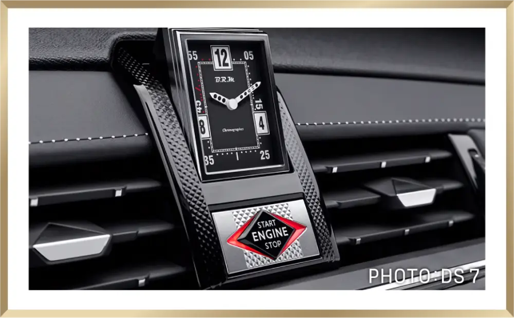 高級時計に用いられる精緻なクル・ド・パリ紋様をインテリアのクロームパーツに採用するなど、